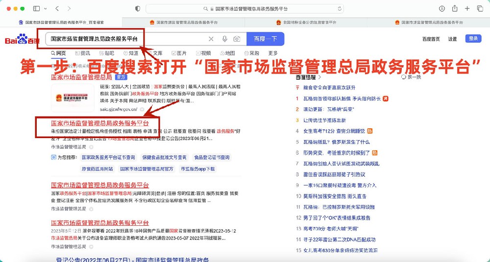 百度搜索“國家市場監(jiān)督管理總局政務服務平臺”