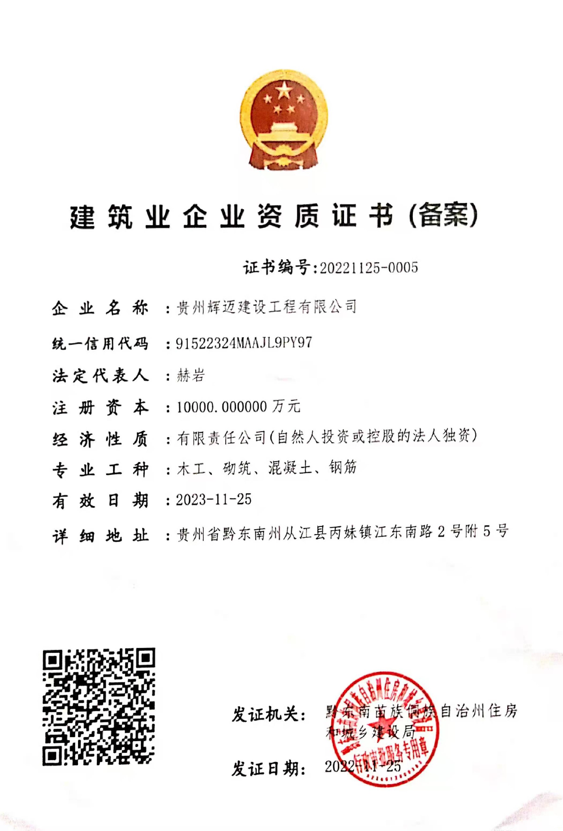 貴州輝邁建設(shè)工程有限公司備案信息