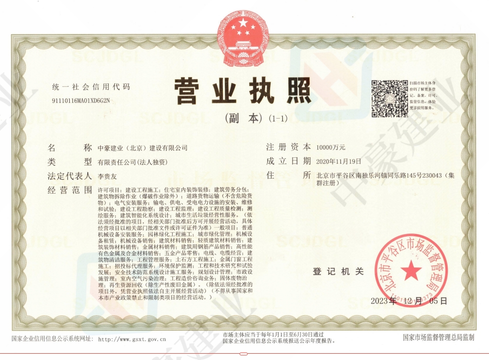 中豪建業(yè)(北京)建設(shè)有限公司資質(zhì)范圍及等級: